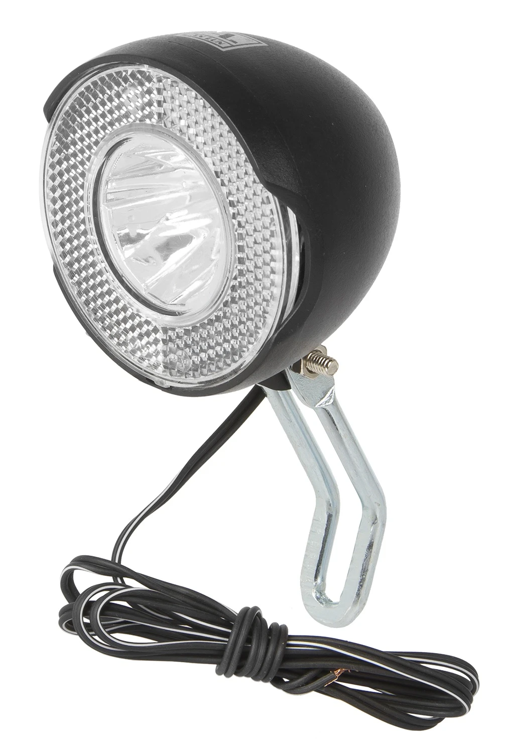 LED dynamo headlamp, ANLUN, 1 LED, 6V/1.1W, 14 Lux, 2 functions, w/double cable, w/reflector, w/German approval no., w/ bracket, OEM packing