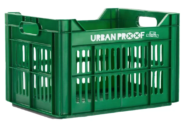 The dark green Urban Proof Recycled bike crate is made of 100% recycled plastic, a responsible choice! You can put all your luggage in it, thanks to the large capacity of 30 liters. Ideal to take with you on your bike. No more heavy shopping bags on your handlebars or heavy school bags on your back. The bike crate is a safe way to carry all your stuff. In addition, the crate is easy to attach to the front carrier of your bike.